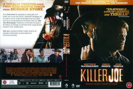 Handling: Chris trues på livet på grund af ubetalt gæld. I desperation hyrer han den korrupte politimand Killer Joe, til at myrde sin mor for at få udbetalt pengene fra hendes livsforsikring. Der er bare det problem, at Chris ikke har pengene til det forskud Joe forlanger, så i stedet får han, Chris søster i pant. William Friedkin (The French Connection, The Exorcist ) har instrueret, og Matthew McConaughey stjæler showet som Joe!
