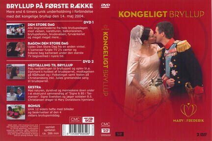 DVD 1:Genoplev hele det romantiske bryllup mellem Frederik & Mary. Danmarks Radio har samlet de bedste og alle de romantiske øjeblikke fra bryluppet den 14. Maj: Fra vielsen, karetturen, balkonscenen, gæsterne, talerne, brudevalsen og til det nygifte par forlader Fredensborg.